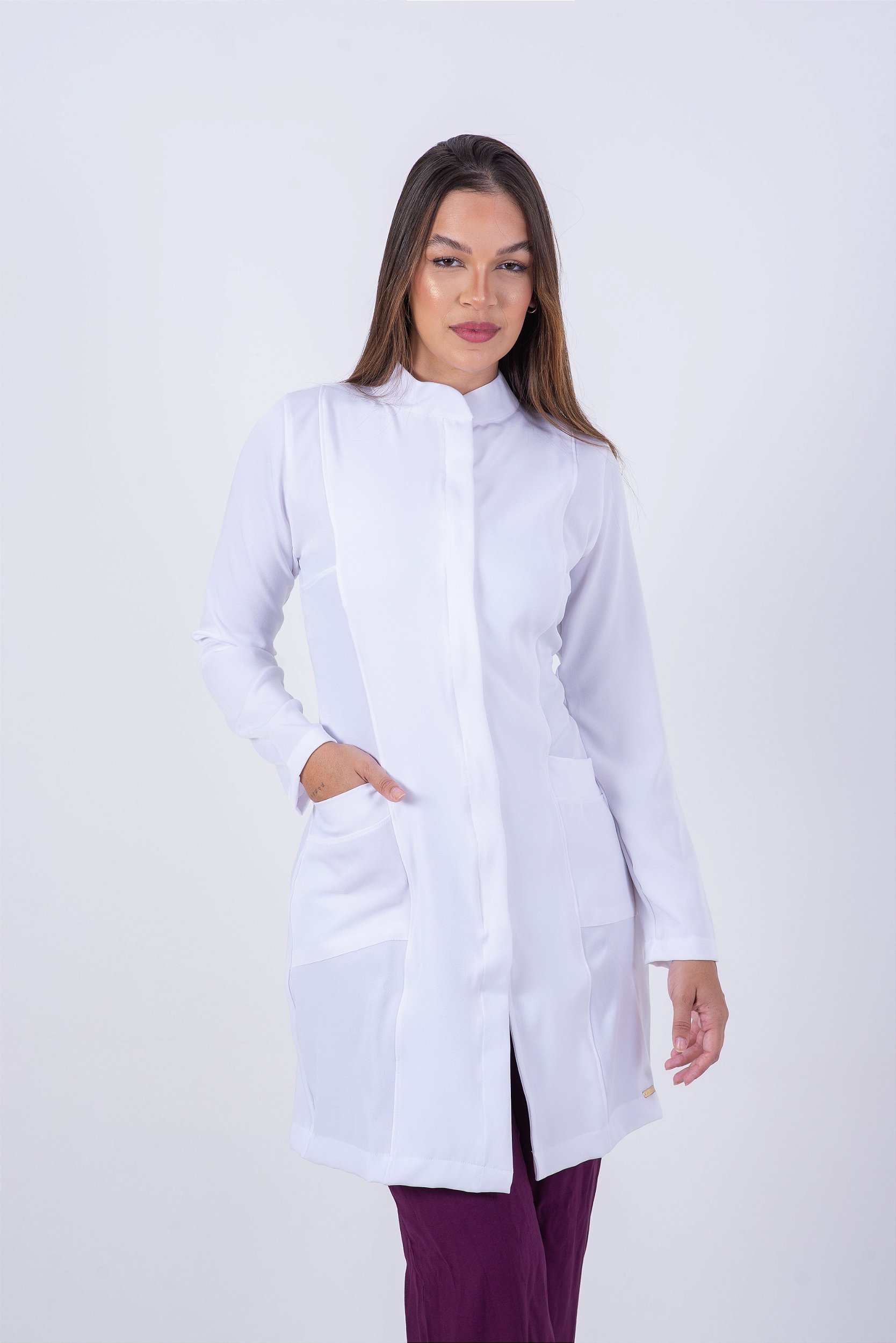Jaleco feminino confeccionado em tecido Two Way, conhecido por seu conforto e caimento que se adapta perfeitamente ao corpo. O modelo combina elegância e modernidade, com gola padre e zíper embutido que trazem um toque de sofisticação e elegância. Ideal para profissionais que desejam aliar estilo, praticidade e bem-estar no dia a dia.